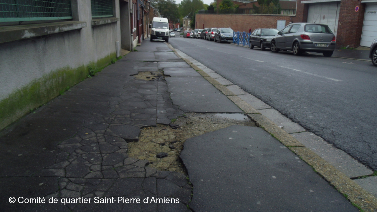 Les trottoirs sont une priorité pour le Comité de quartier Saint-Pierre d'Amiens, ils sont souvent remontés en doléances à la ville.